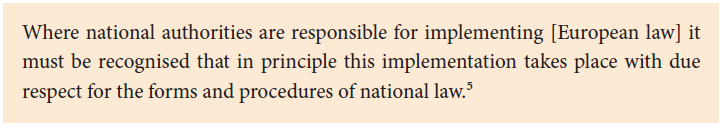 This formulation has become known as the principle of ‘national procedural autonomy’. It essentially means that in the judicial enforcement of European law, the Union ‘piggybacks’ on the national judicial systems. Yet the danger of such ‘piggybacking’ is that there may be situations in which there is a European right but no national remedy to enforce that right. But rights without remedies are ‘pie in the sky’: a metaphysical meal. Each right should have its remedy; and for that reason, the autonomy of national enforcement procedures was never absolute. The Union has indeed imposed a number of obligations on national courts. The core duty governing the decentralized enforcement of European law by national courts is thereby rooted in Article 4(3) TEU: the duty of ‘sincere cooperation’. It is today complemented by Article 19(1), which states: ‘Member States shall provide remedies sufficient to ensure effective legal protection in the fields covered by Union law’.